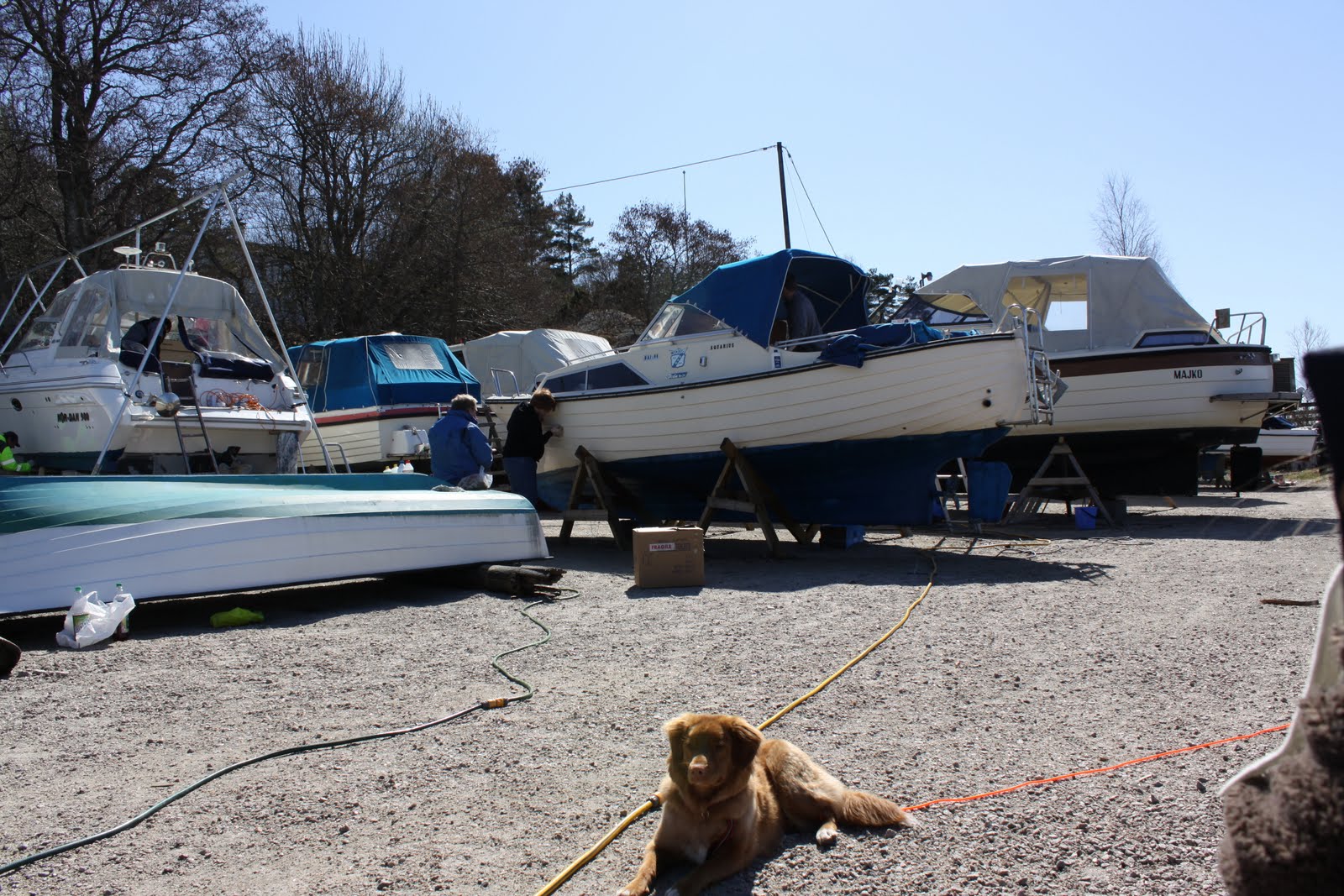 Vel da er båtpussen godt i gang, og Frøya koser seg i havna, med mye folk som pusser båt, og mye oppmerksomhet i strålende vær (selvom det har snødd i dag 🙁 )