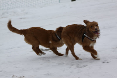 På bildene ser vi frøy og Oscar i lek og morro Oscar en en Tollerhanne fra nøtterøy som er 14 dager eldre en Frøya, som vi treffer regelmessig for trening og lek Oscar traff vi første gang på valpekurs, og han går også det samme vidregående kurset som oss, og det beste av alt han bor kun ett par km unna.