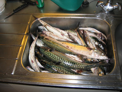 Dagens fangst ble 12 pene makreller og 19 stykk hviting, ikke værst på ett par kveldstimer :).