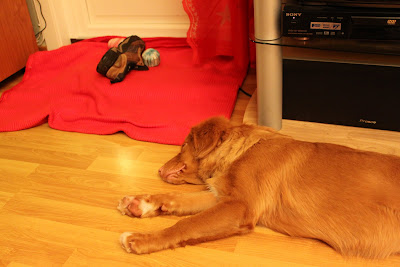 Vel da er vi godt inne i romjula og her kommer det noen bilder, det første er Frøya som koser seg med tørka griselabb på juleaften.