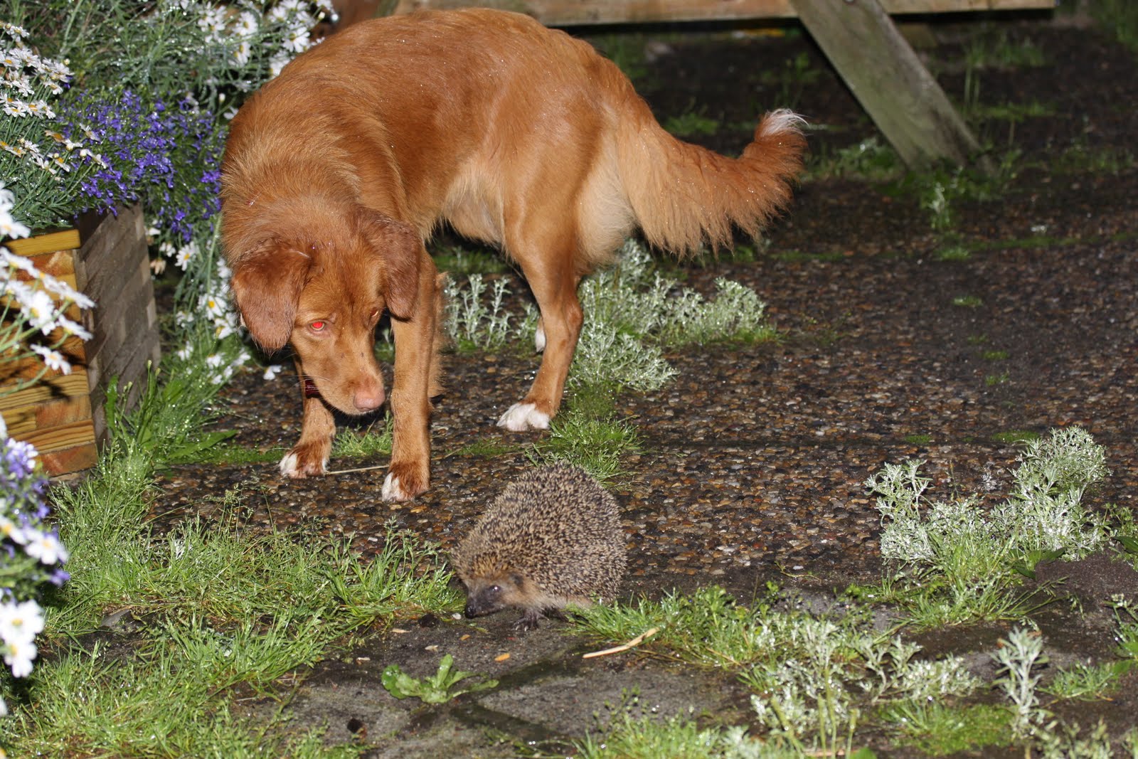 Og til slutt ett bilde av bolla piggsvin som bor under bua, nå begynner han? og bli vant til Frøya, og tør og bevege seg runt med Frøya svindsende runt, til og begynne med rullet bolla seg bare sammen til en ball, men nå tror jeg han skjønner at Frøya bare er ille nyskjerrig.