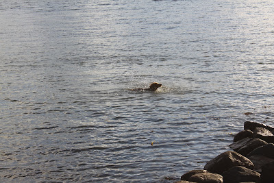 Og under er Frøya i torpedofart på veg ut til matfar som plasker i vannet.