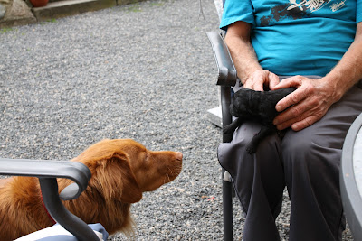 Frøya var litt skeptiske til de små krabatene, snuste veldig forsiktig og så var det greit med det.